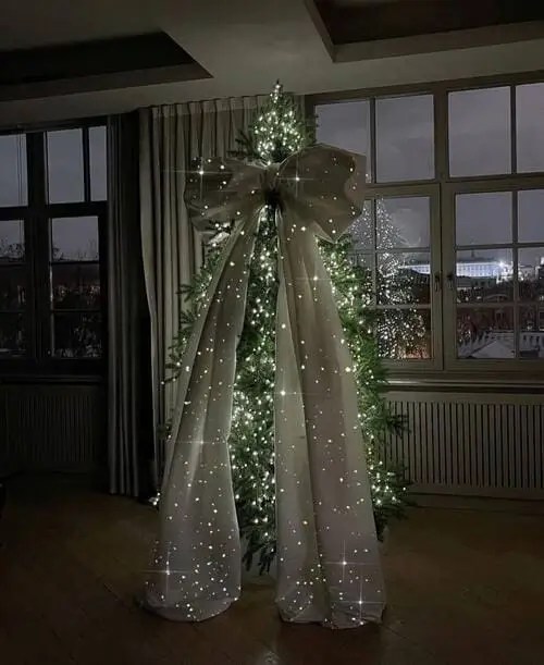 🎀 Tie cream, gold, or velvet bows evenly around the tree.