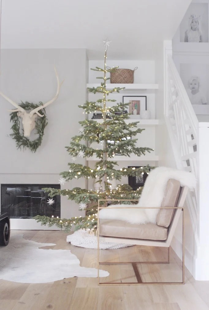 If you want to really nail the Nordic look at home this year, a faux cypress tree (like the one I’ve linked above on Amazon) is the perfect choice. Its airy, understated branches look amazing with wood bead garlands, linen ribbon, and kraft-paper wrapped gifts.